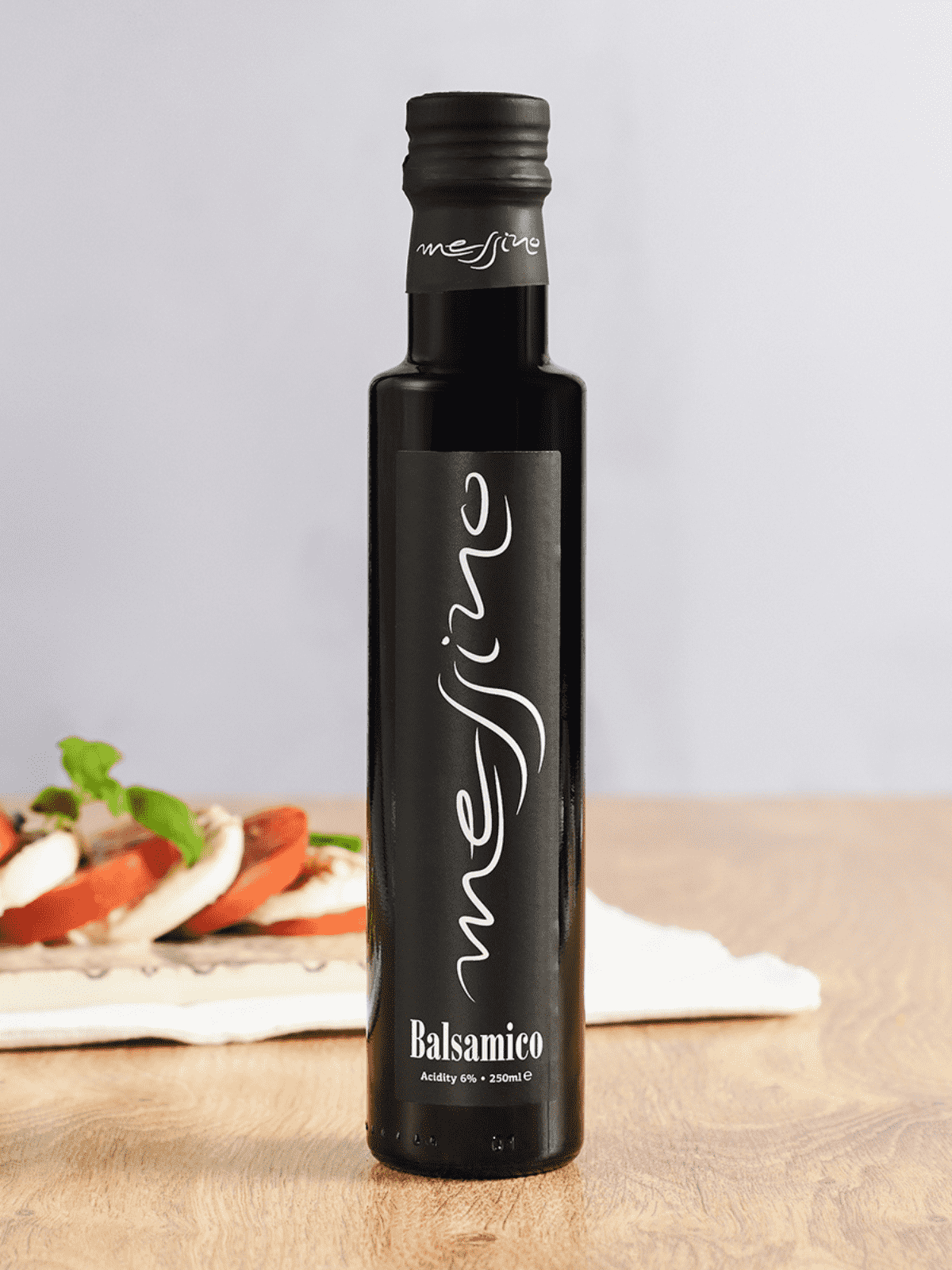 ❁ Basierend auf dem beliebten Balsamico-Essig von Messino, der aus Traubenmost und griechischem Weinessig hergestellt und mindestens 6 Monate gereift ist.